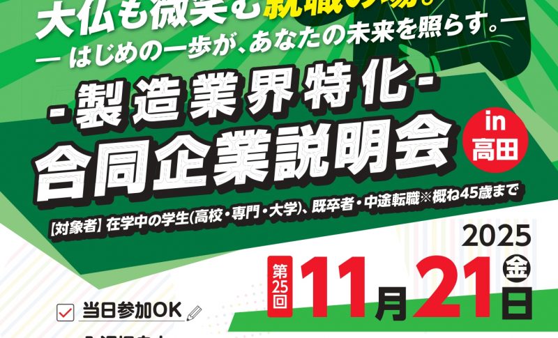 11月21日(金)製造業界特化の合同企業説明会に参加させていただきます!