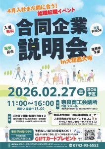 2月27日(金)奈良商工会議所で行われる合同企業説明会に参加させていただきます。
